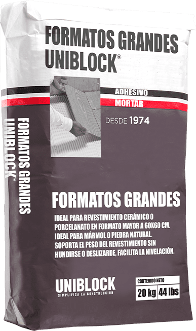Adhesivo base cemento modificado con agregados y químicos especiales, diseñado para pegar piezas cerámicas, porcelánicas y piedra natural de gran tamaño y peso.