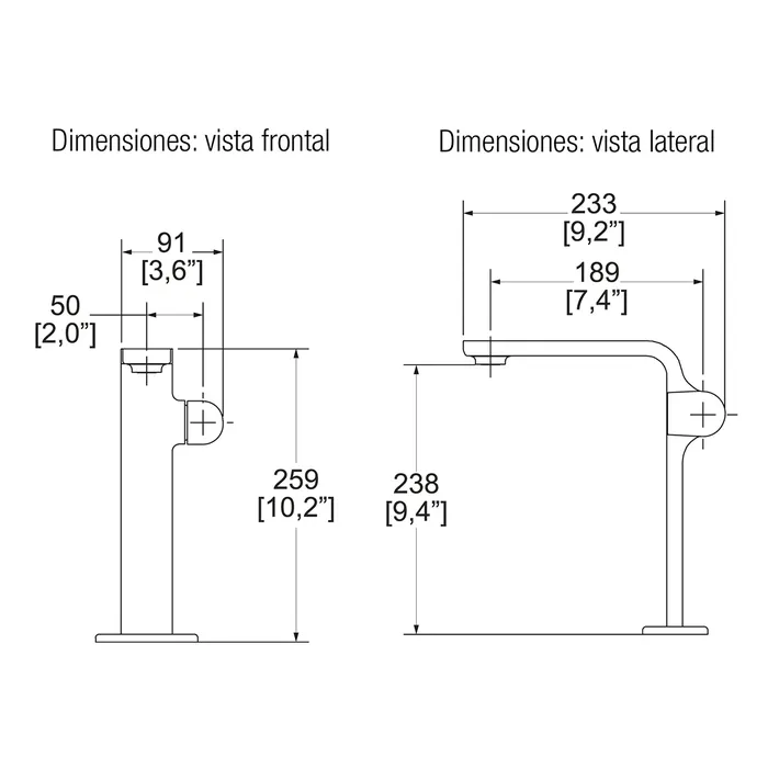 Monomando alto de lavabo. Incluye contra de push. Incluye inserto para usarse con lavabos sin rebosadero. Acabado cromo. Presión mínima requerida 0.60 km/cm2. Recomendado para lavabos de sobreponer.