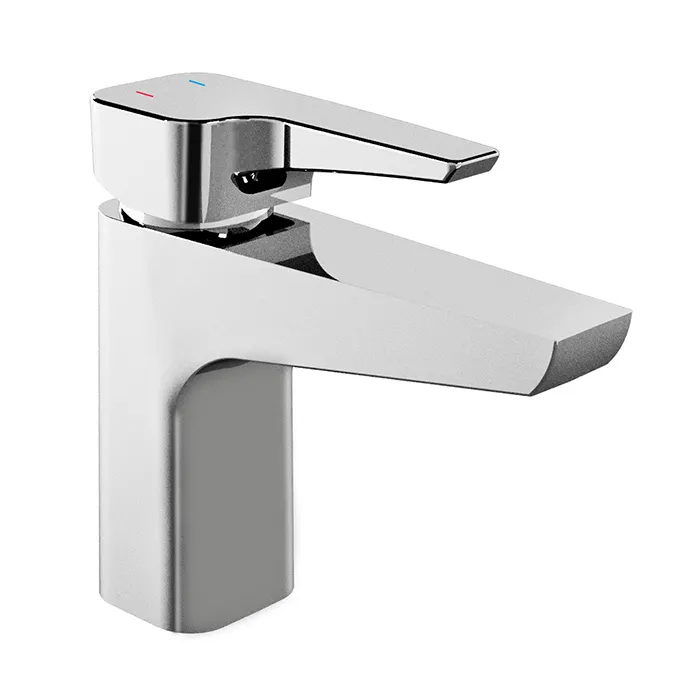 Monomando bajo para lavabo con aireador oculto e indicador de temperatura frío o caliente. Acabado cromo. Presión mínima requerida 0.25 kg/cm2. No incluye contra de push.