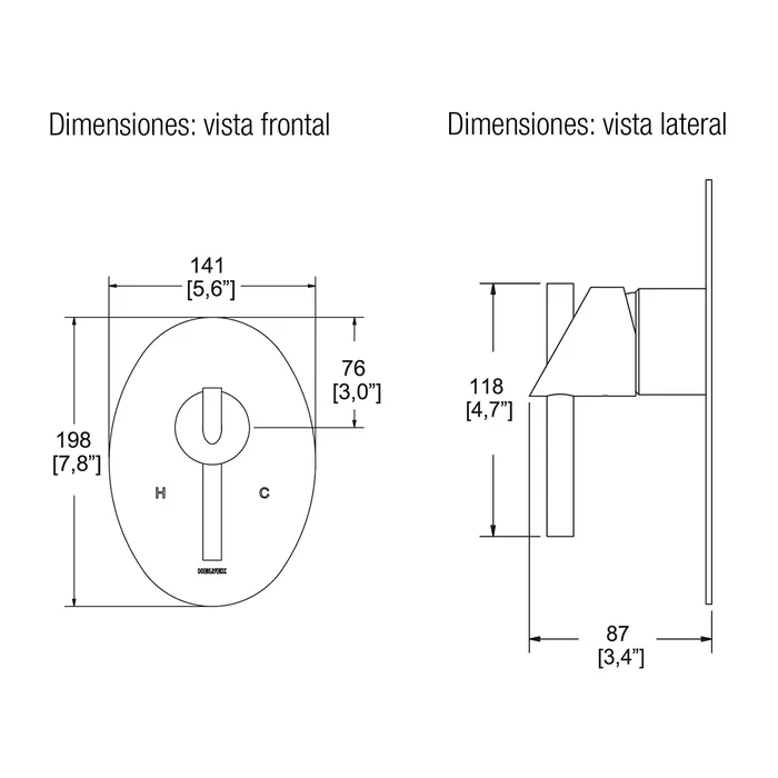 Monomando para regadera o tina sin desviador. Acabado Cromo. Presión mínima requerida 0.80 kg/cm2.