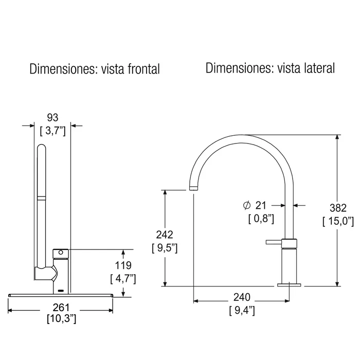 Monomando para fregadero. Cuello giratorio. Acabado Ébano. Presión mínima requerida 0.25kg/cm2