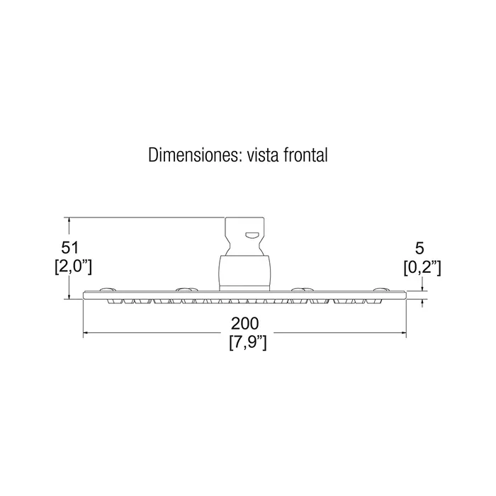 Regadera redonda plato ancho de 8″ (20cm) Ultraplana de chorro fijo. Espesor 5mm aprox. Sistema anticalcáreo. Acabado Cromo. Presión mínima requerida 1.00 kg/cm2. Consumo máximo de agua 8.7 L/min.